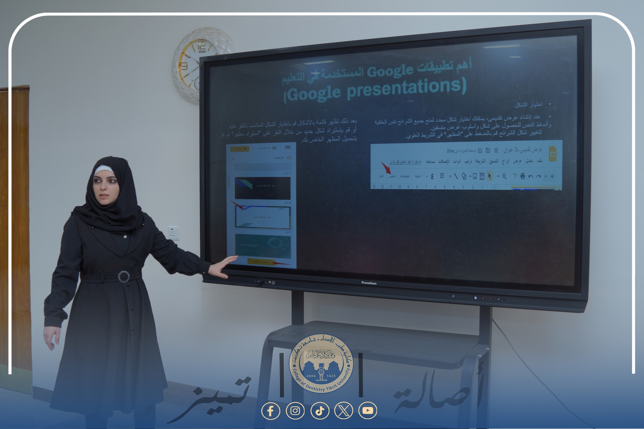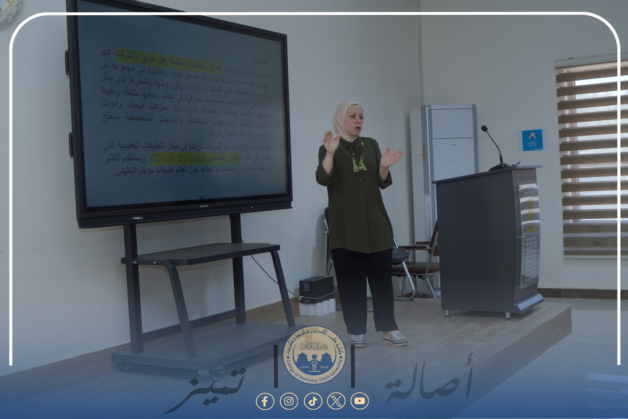 Under the patronage of Professor Dr. Waad Mahmoud Raouf, President of Tikrit University, and under the supervision of Assistant Professor Dr. Mohammed Raheel Ali, Dean of the College of Dentistry, and Assistant Professor Dr. Sayyaf Abdul Hussein, Director of the Continuing Education Center, the Continuing Education Center, in cooperation with the College of Dentistry, organized a training course entitled “Google Services in Education.”