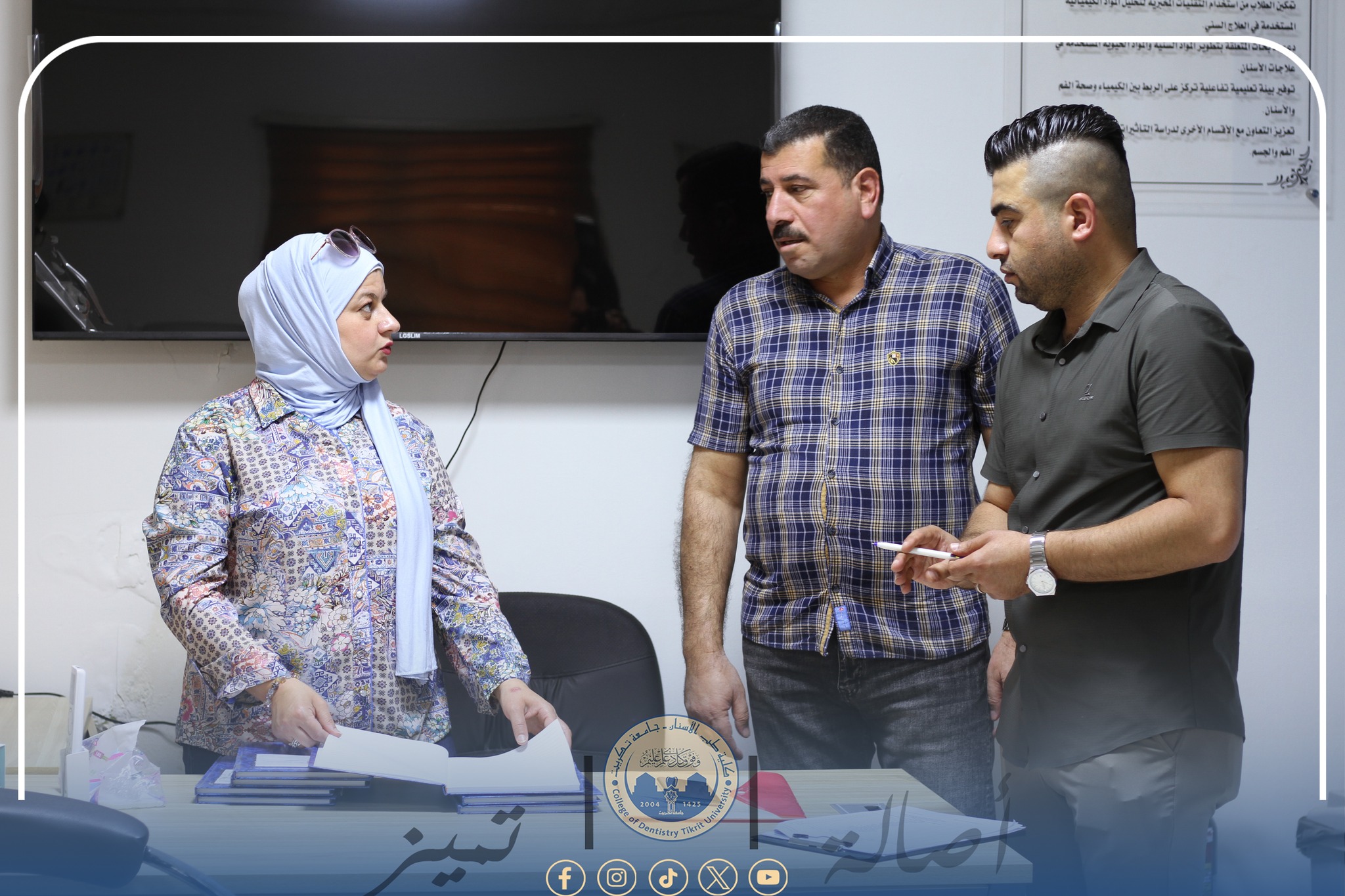 Today, the College of Dentistry at the University of Tikrit welcomed the Laboratory Evaluation Committee as part of its field visits to assess the status of scientific laboratories across the university’s colleges, in accordance with the Guideline for Iraqi Laboratory Quality Standards issued by the Ministry of Higher Education and Scientific Research in 2022.