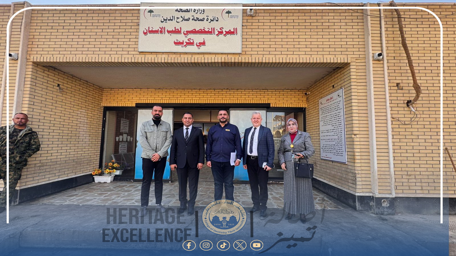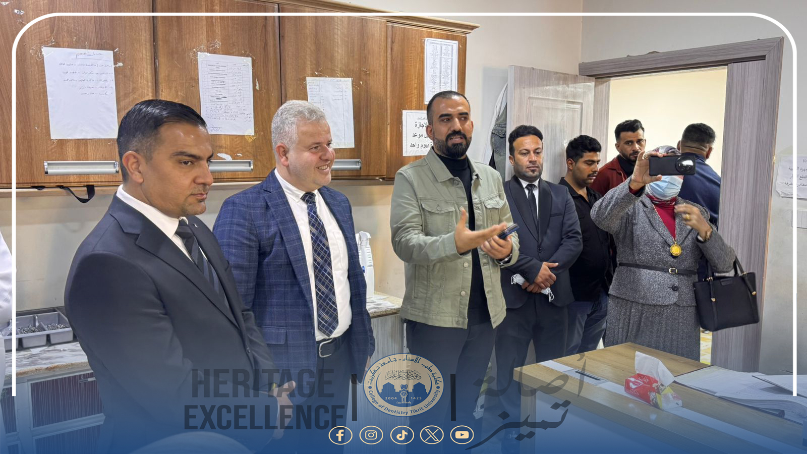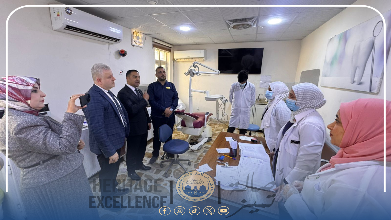 The National Evaluator Team, which includes a ministerial committee responsible for determining the eligibility of colleges to obtain programmatic accreditation, visited today the Specialized Dental Center at Tikrit Teaching Hospital to assess the competence of graduates of the College of Dentistry at the University of Tikrit and to measure their clinical and academic skills in accordance with the approved national standards.