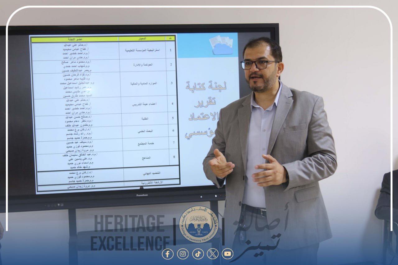 The College of Dentistry at the University of Tikrit hosted today a scientific workshop that addressed the importance of institutional accreditation and guided the university’s academic departments toward fulfilling its specific requirements. The event comes as part of the university’s efforts to promote quality and advance academic and administrative performance.